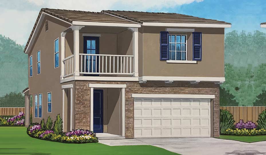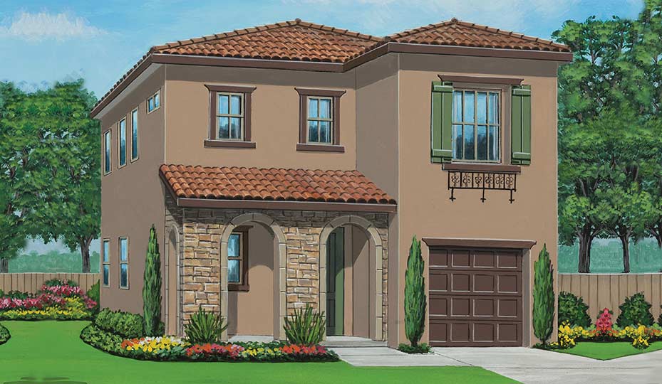 Presenting 1,579 square feet of living space in either Monterey, Spanish or Tuscan architectural styles, the 3-bed, 2.5-bath Palmina also offers a two-car garage with a storage room.