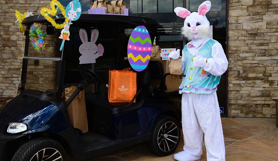 Since many resident families were unable to gather holiday supplies, Riverstone brought the Easter egg hunt straight to their front doors. The delivered goodies included more than 2,000 sanitized Easter eggs and pre-wrapped candies for children’s safety.