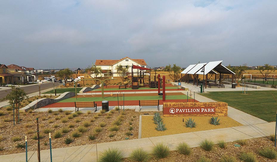 “Riverstone has a rich agricultural legacy that we wanted to protect and preserve,” said Broussard Associates’ Terry Broussard. “These lands have been a thriving patchwork of pistachio, almond and citrus trees—and for the first phase of Riverstone the land had a fairly large olive orchard. So instead of just wiping it off the map, we incorporated it into our design to landscape medians, corners and other areas. And we focused on a low-water, low-maintenance design from the very beginning. Riverstone’s thematic landscape feels lush, but it’s very drought tolerant.”