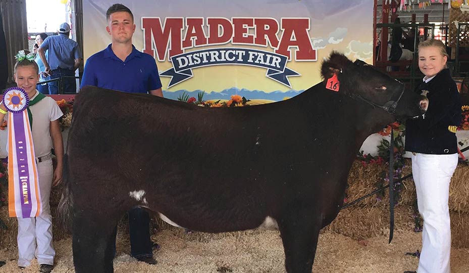 Kendall Geist of Madera-Liberty FFA (and Riverstone resident) proudly shows off her Supreme Champion Market Steer at the 2019 Madera District Fair.