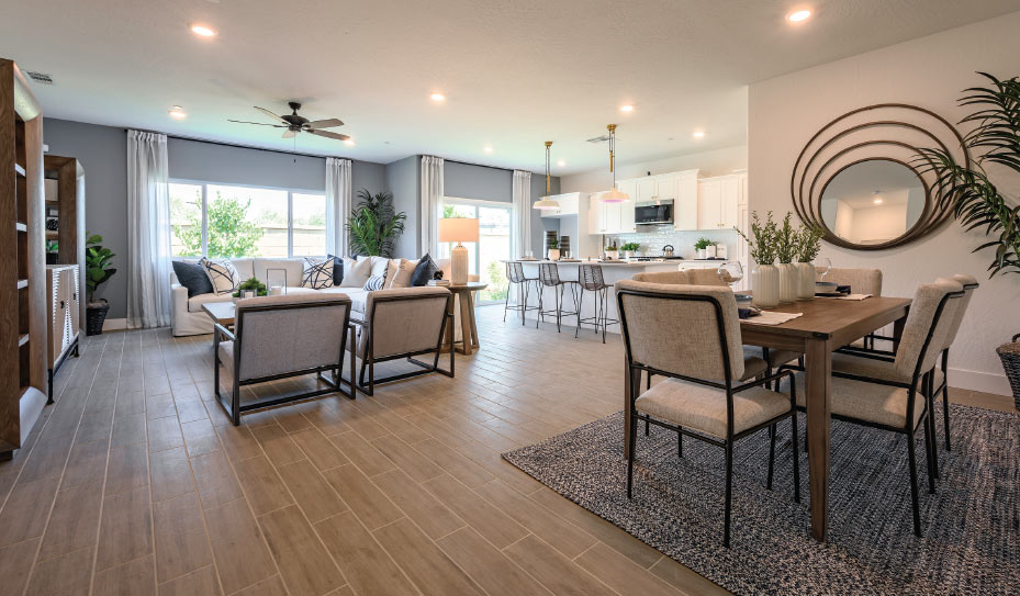 The spacious, open design of the Olive plan welcomes family dinners and gatherings with ease. The residence belongs to the Clementine Series by Lennar.