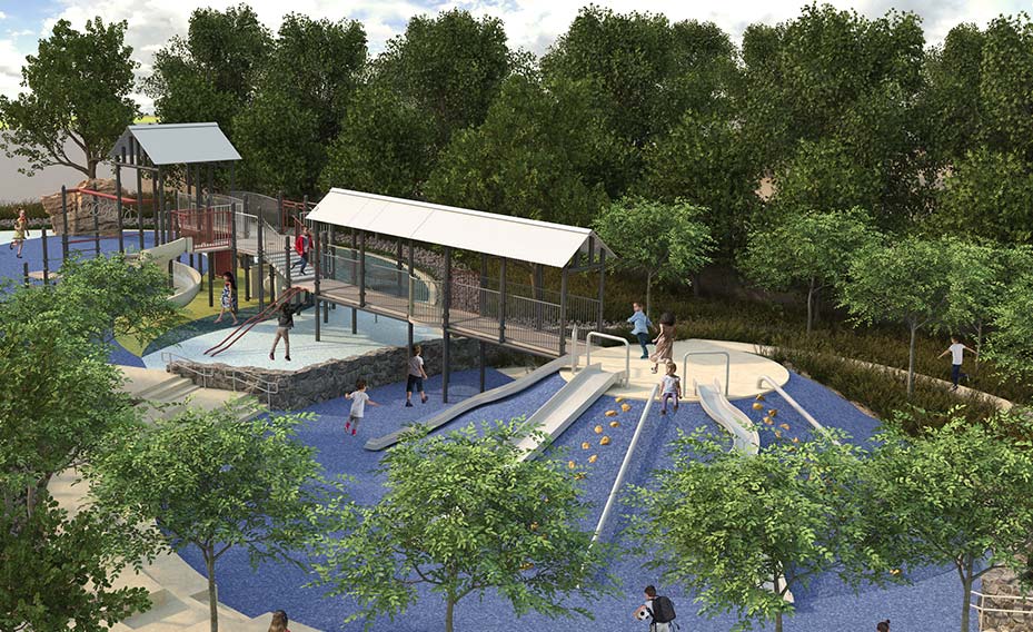 Just a short walk or bike ride away from Riverstone’s first collections of new homes, Adventure Park is anticipated to offer play structures, climbing boulders, three different slides, a small amphitheater, and grassy areas for all kinds of kid-sized fun.