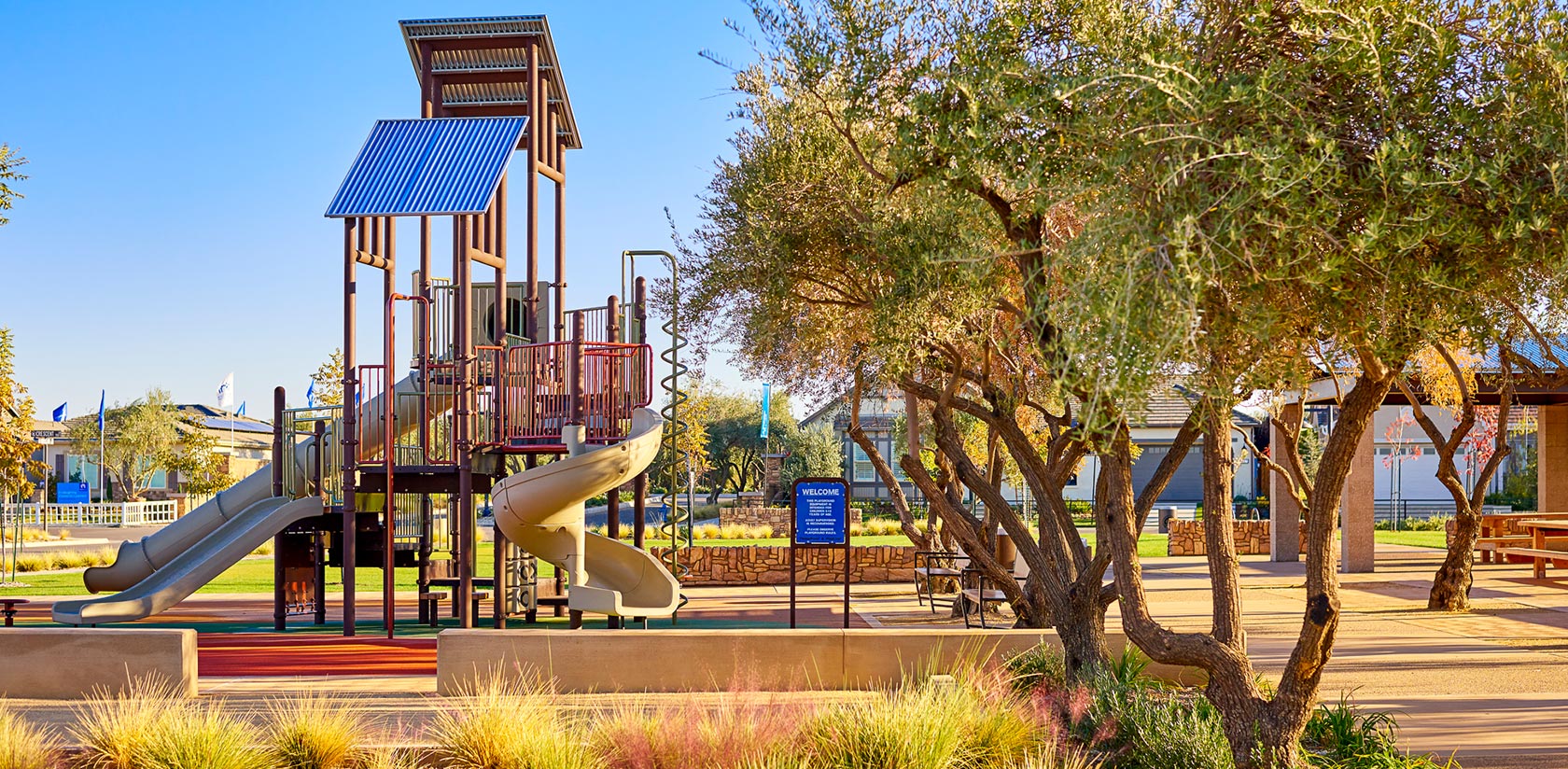 Blanketed by olive and pistachio orchards generations ago, the Lodge District is fertile land for growing a great family. Wide sidewalks along tree-lined streets lead to five neighborhood parks and a dog park, Stone Creek Elementary and Riverstone’s first collections of new homes. To socialize, stay fit and lounge poolside at the coolest community clubhouse you’ll ever see, The Lodge at Riverstone with its array of exciting amenities is situated right in the district’s heart—practically steps away from residents’ front doors.