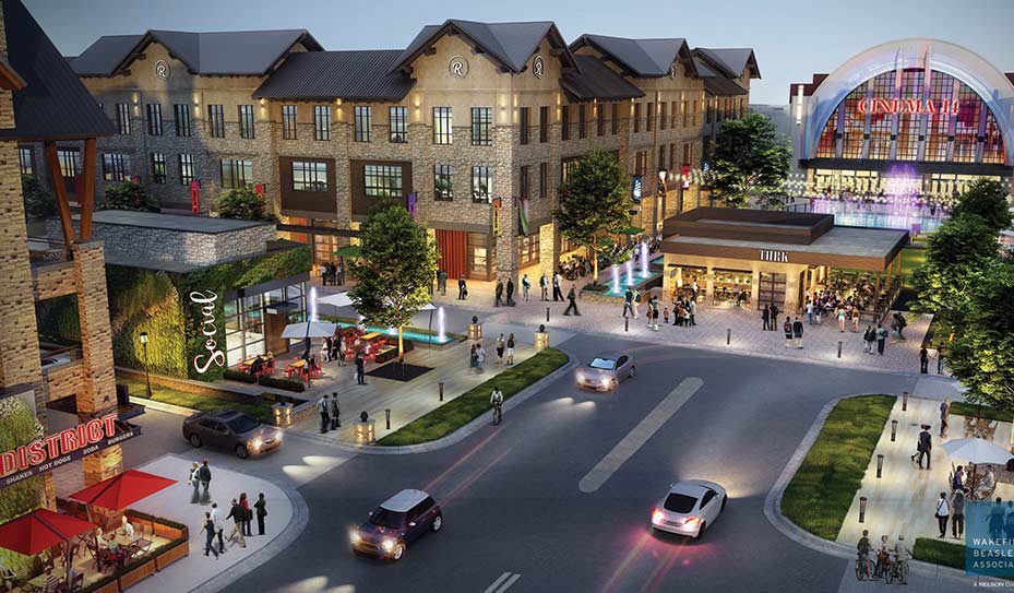 Located directly across the street from Riverstone’s collection of homes, Riverwalk is planned to include condominiums, offices, restaurants, retail stores and a movie theater. Image is an artist’s rendition.