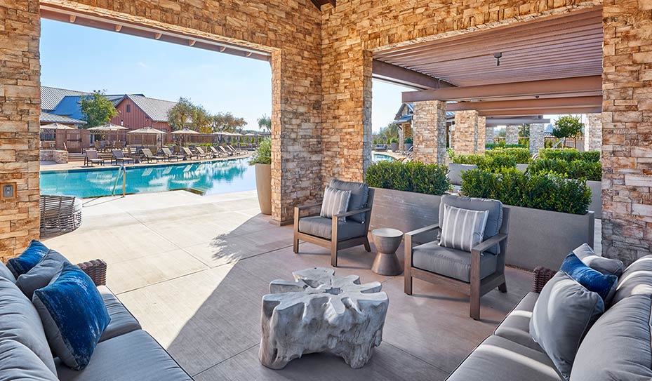 Most of Riverstone’s sociable summer fun takes place at The Lodge community clubhouse, a unique indoor-outdoor venue comfortable enough to call your second living room.