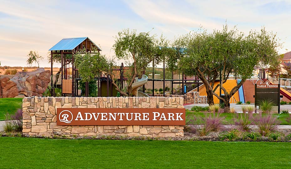 Just a short walk or bike ride away from Riverstone’s homes, Adventure Park offers play structures, climbing boulders, three different slides and grassy areas for all kinds of kid-sized fun.